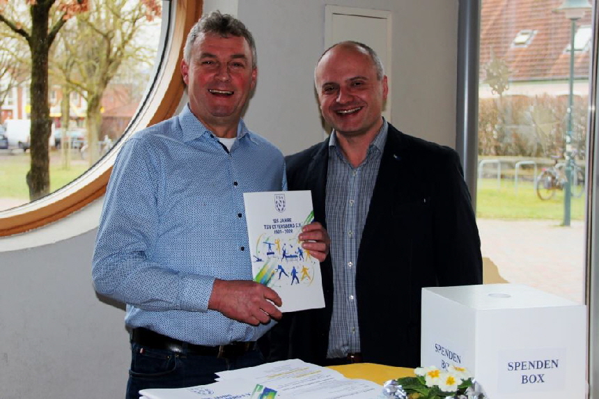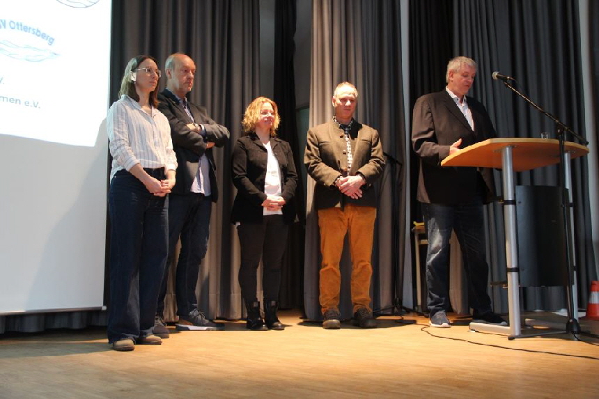 Die Vorstände der 4 Vereine Sarah König (Schwimmen), Frank Schwarz (Fußball), Nicole Cordes (Turnen), Jan Enger (Volleyball) und Hauptorganisator Jochen Hinrichs begrüßten die ca. 125 geladenen Ehrengäste zur Auftaktveranstaltung zum Jubiläumsjahr 125 Jahre Turn- und Sportverein Ottersberg e.V.